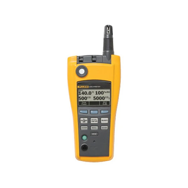 • Fluke 975 позволяет одновременно измерить и зарегистрировать температуру, влажность, содержание CO2 и CO с отображением измеренных значений на ярком ЖК дисплее с подсветкой.