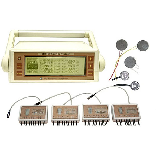 Измеритель ИТП-МГ4.03/Х(II) "Поток" позволяет выполнять замеры тепловых потоков и определение температуры одновременно по 100 каналам. В режиме наблюдения прибор позволяет выполнять измерения на протяжении 400 часов с периодичностью замеров от 1 минуты до 3 часов. Память электронного блока может сохранять до 5000 показаний измерений по каждому каналу. Также возможно выполнение измерений в оперативном режиме.