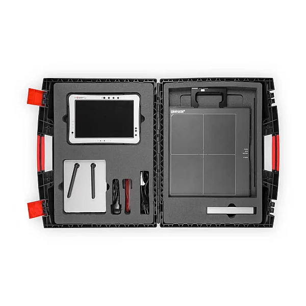 Комплекс включает в себя плоскопанельный рентгеновский детектор, управляющий планшет оператора-дефектоскописта и оснастку для позиционирования детектора на объекте контроля.