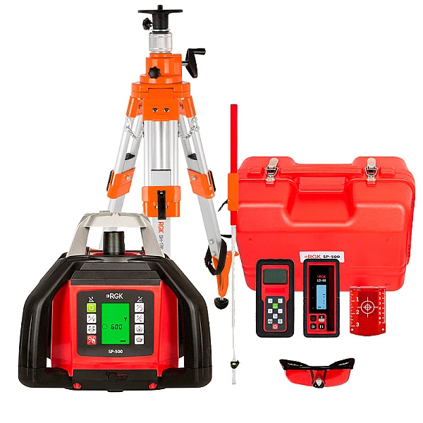 Купить Комплект ротационного нивелира RGK SP-500 + штатив + рейка в Рязани легко — просто позвоните по телефону: 8-800-551-11-01