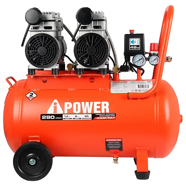 Купить Компрессор поршневой безмасляный A-iPower AC290/50LF в Рязани легко — просто позвоните по телефону: 8-800-551-11-01