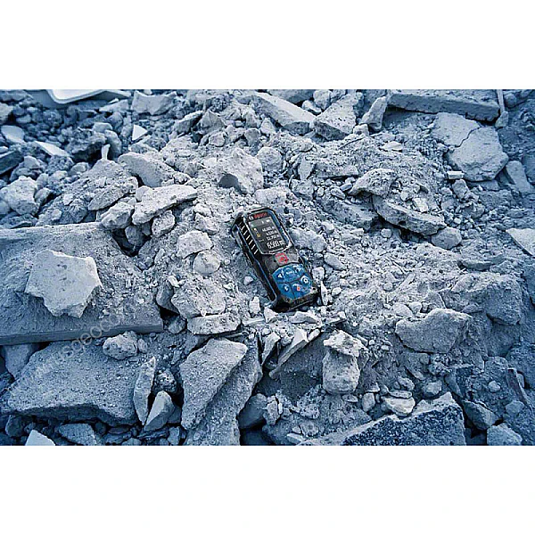 Дальномер станет отличным выбором для стройки за счет устойчивости к падениям и пыле-влагозащите корпуса по классу IP65. Корпус оборудован амортизирующими резиновыми накладками, которые эффективно гасят и рассеивают энергию удара.
