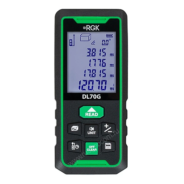 Купить Лазерный дальномер RGK DL70G - зеленый луч в Рязани легко — просто позвоните по телефону: 8-800-551-11-01