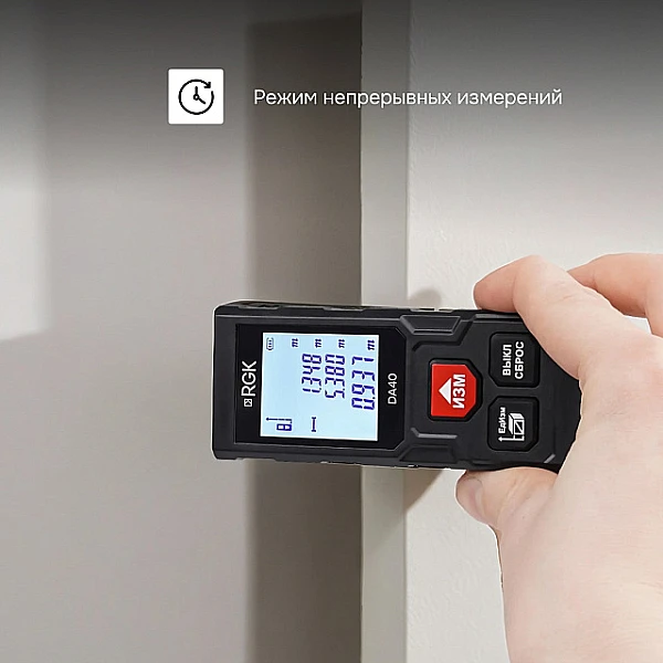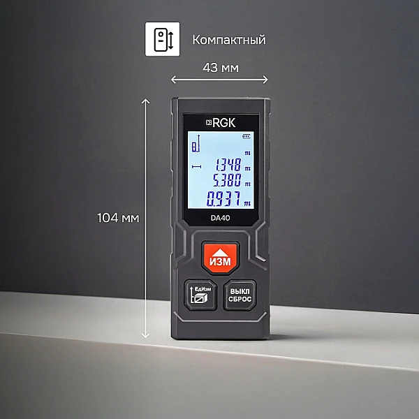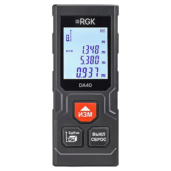 Лазерный дальномер RGK DA40 - компактный прибор, который легко помещается в карман, и при этом дает строителям и замерщикам весь функционал, необходимый в повседневной работе.