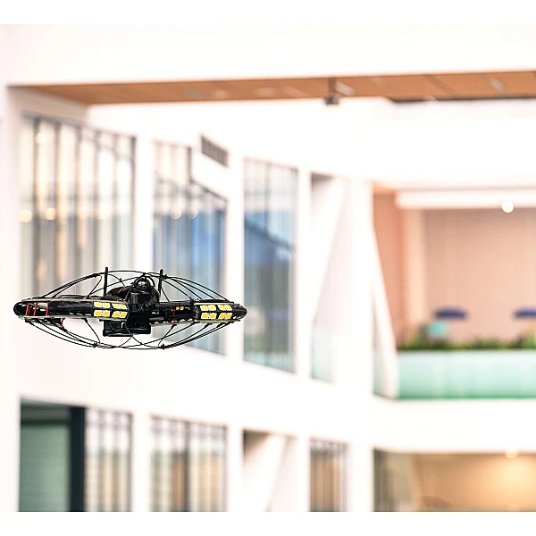 Полётные задания автоматизированы. Есть возможность ручной коррекции задания оператором дрона. Встроенные системы навигации ориентируются в пространстве без GPS на расстоянии до 1000 метров, дрон автоматически распознаёт и обходит препятствия, не боится столкновений. При потере связи устройство автоматически возвращается в точку старта. Корпус защищён от ударов и контакта с конструкциями, что критично для полётов в тесных и тёмных помещениях. На борту - лидар, 4K-камера с гиростабилизацией и мощная светодиодная подсветка. Дрон можно дооснастить полезной нагрузкой, например, тепловизором, ультрафиолетовой камерой или газоанализатором для обнаружения утечек газа.