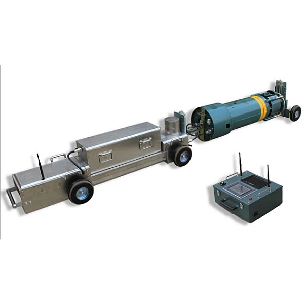 Автоматизирован, имеет индикатор запаса заряда аккумуляторных батарей, оснащен функцией предупреждения о наличие преграды или воды в трубопроводе, при низкой остаточной энергии батарей, самоходная рентгеновская установка кроулер возвращается из трубопровода.