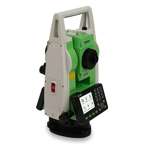 Тахеометр имеет прочный корпус с защитой от пыли и влаги по стандарту IP66, рабочий диапазон температур от -20°C, закрепительные винты и подсветку сетки нитей с клавиатурой для работы в тёмное время суток.