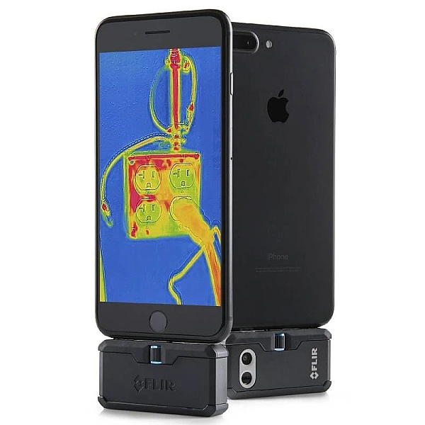 Тепловизор FLIR ONE PRO LT iOS - ИК-камера, присоединяемая к iPhone через разъем Apple Lightning, измеряет температуру до 120° C с разрешением ИК-изображения 4800 пикселей. Может использоваться электриками, инспекторами, специалистам по автомобильной технике, сотрудниками сферы ЖКХ. Устройство не тратит батарею телефона, т.к. заряжается отдельно.