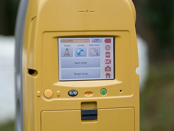 Для управления работой наземного лазерного сканера Topcon используется сенсорный экран с кнопками управления. Есть возможность использовать стилус для точного указания нужных элементов меню. На экран может выводиться изображение с камер и результаты сканирования.