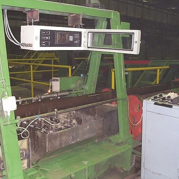 Автоматизированная ультразвуковая измерительная установка серии «СКАНЕР» (модель № 5.03) с автоматической фиксацией и расшифровкой результатов контроля предназначена для проведения неразрушающего контроля стальных бесшовных труб диаметром 50 … 426 мм и толщиной стенки 3.0 … 40.0 мм в технологическом потоке производства труб. Установка АУЗК позволяет проводить сплошной контроль тела трубы и определять участки труб с толщиной стенки, выходящей за пределы допусков и обнаруживать расслоения, а также выявлять продольно и поперечно ориентированные дефекты в металле. Способ ввода ультразвуковых колебаний – иммерсионный, контактная жидкость – питьевая вода. Длина неконтролируемых концов не более 200 мм. Работа установки